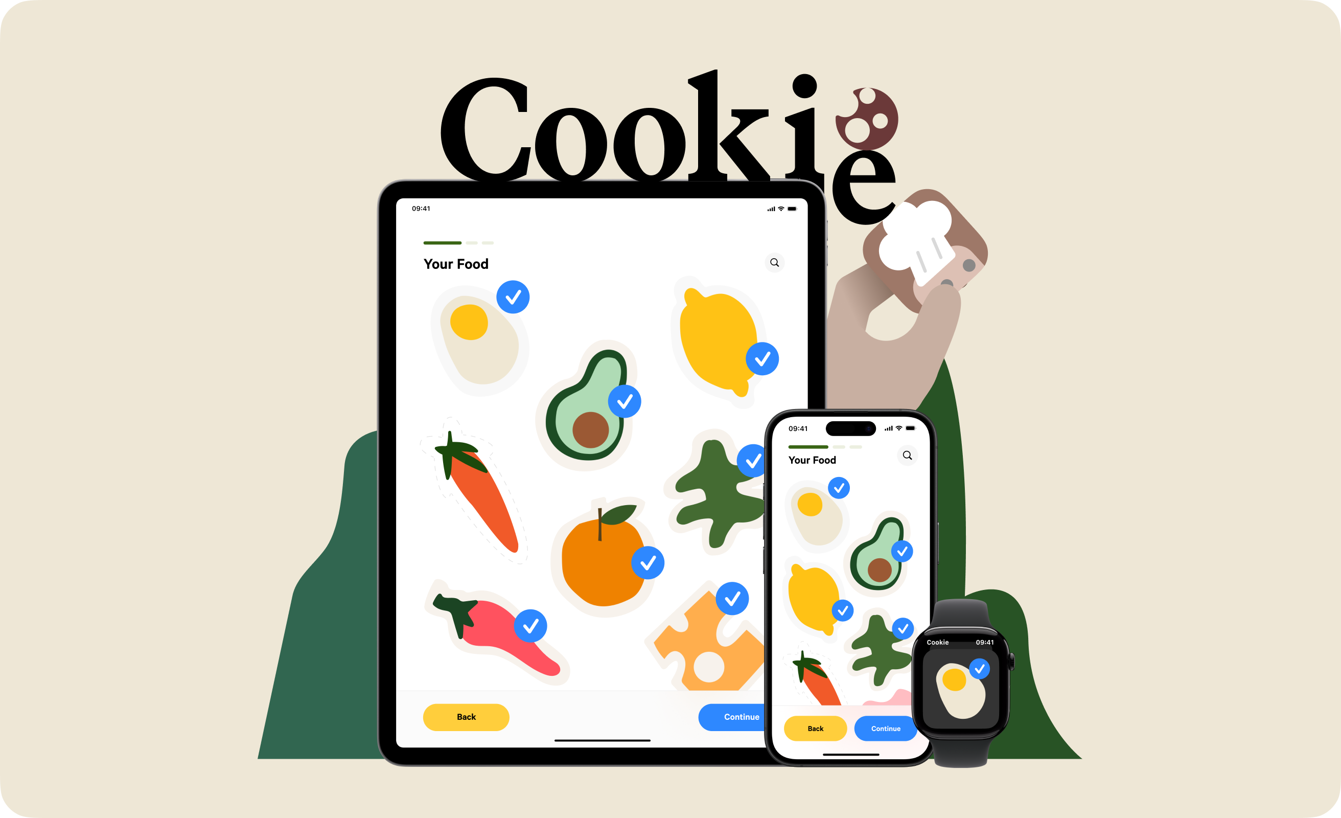 The Cookie visual world is designed to be loved by kids, and parents alike, with round, soft interface elements that take away some of the pressure of cooking.